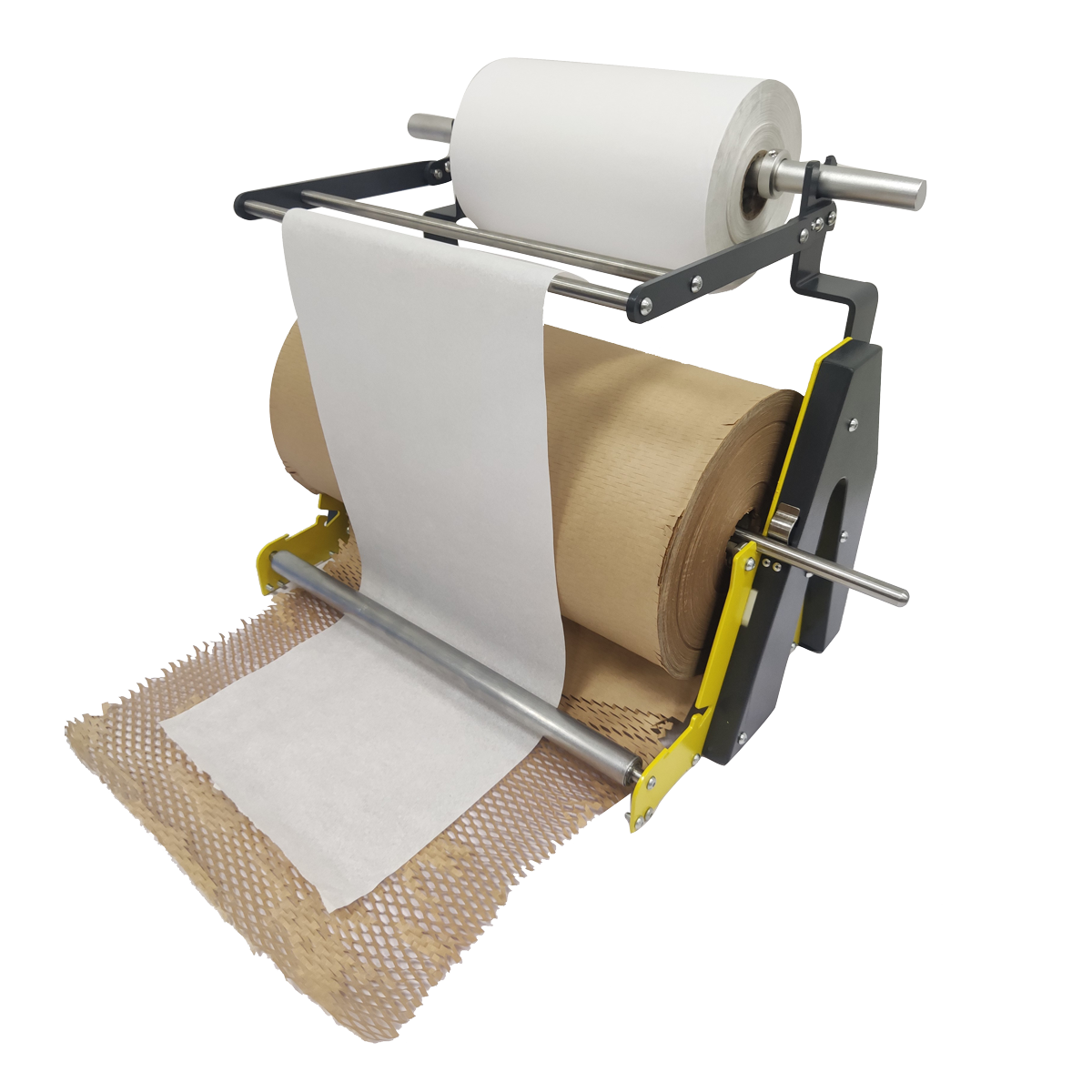 Der Abroller aus Metall hält die X-Wrap Rolle sicher fest und gewährleistet ein praktisches Abrollen und Einwickeln Ihrer Produkte. Mit der wabenartigen Struktur garantiert der X-Wrap den gleichen Produktschutz von zerbrechlichen Objekten beim Transport, wie eine Luftpolsterfolie aus Plastik. Neben der Standard Variante ist der X-Wrap auch mit einem Zwischenlagen-Adapter erhältlich. So können Produkte gleichzeitig mit dem Polsterpapier so wie auch mit Seidenpapier eingewickelt werden. Das Seidenpapier schützt sensible Produkte zusätzlich vor Kratzern.